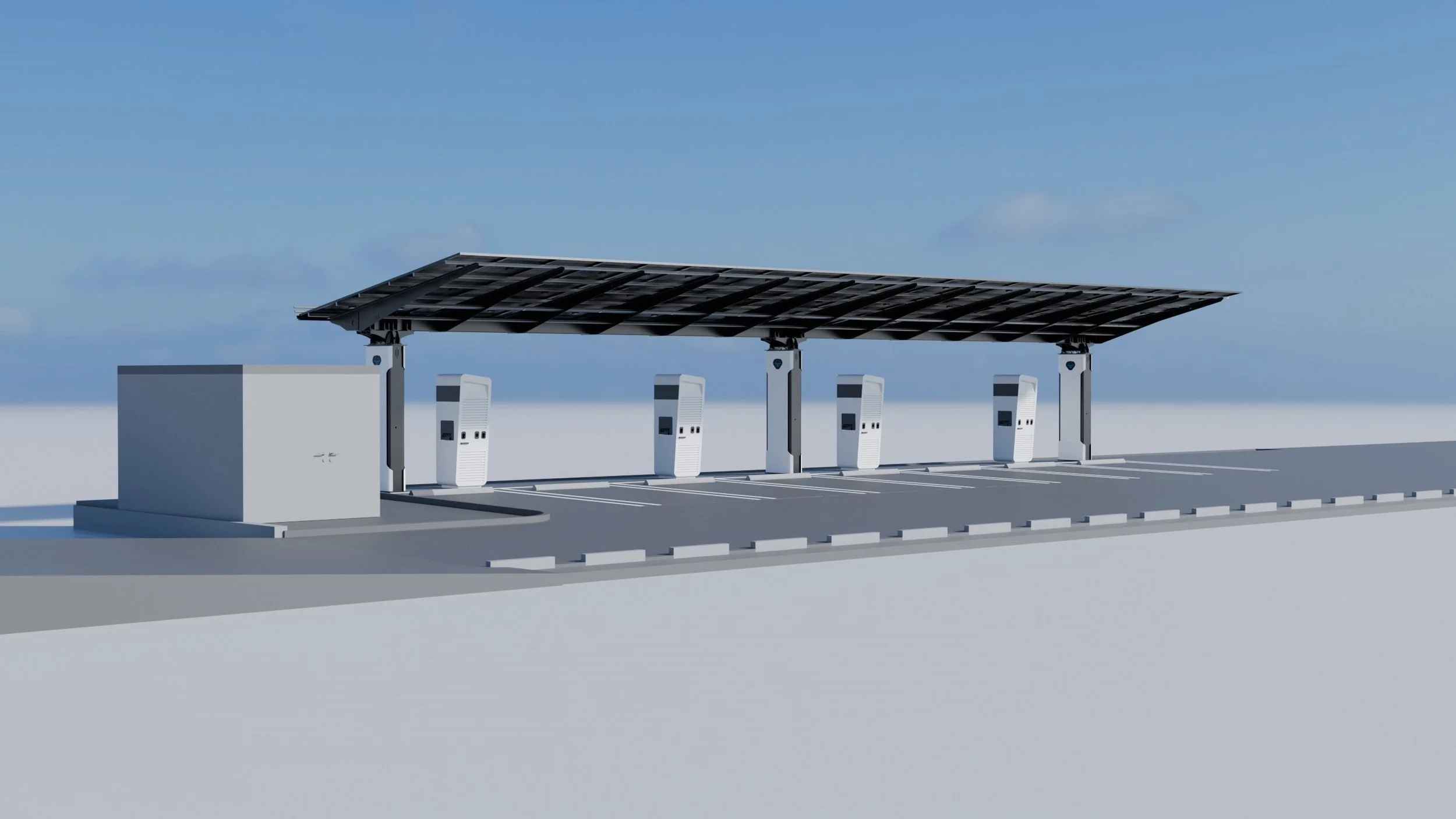 Die auf dem Solarcarport erzeugte Energie reicht bei einem Schnell-Ladepark kaum aus, um die Fahrzeuge rein mit der Kraft der Sonne zu betanken, aber die zusätzliche Energiebereitstellung – idealerweise gekoppelt mit einem Speicher – kann zumindest einen Beitrag zur Stromversorgung leisten.